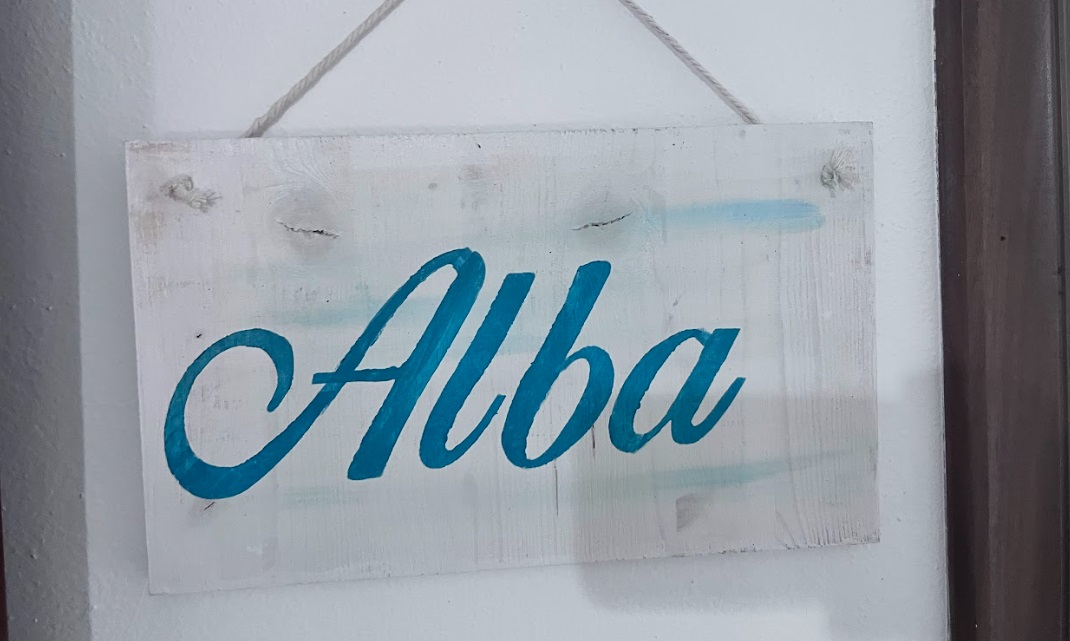 Alba è situata al primo piano della struttura, con accesso indipendente e terrazzo con vista mare.